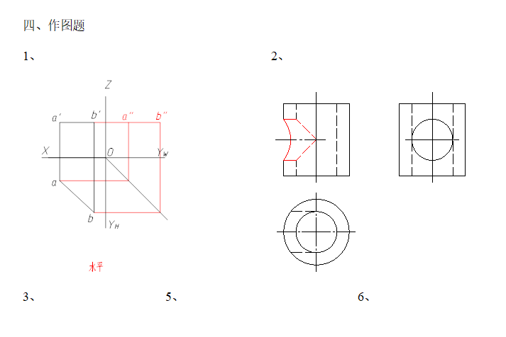 1、已知直线的两面投影,画出第三面投影, 2、求立体的相贯线,完成正面图投影。并判断直线相对于投影面的位置关系。