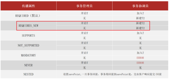事务传播行为:事务协调员对事务管理员所携带事务的处理态度。