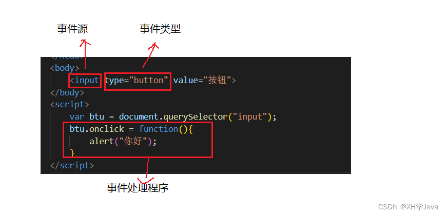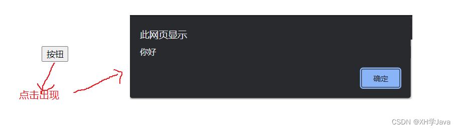 示例:点击按钮,弹出“你好”的警示窗口