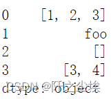 - s = pd.Series([[1, 2, 3], 'foo', [], [3, 4]])
