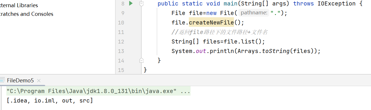 - boolean createNewFile() 根据 File 对象,自动创建一个空文件。成功创建后返回 true