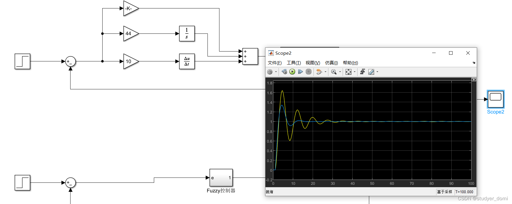 首先介绍了快速反射镜的结构和工作原理,然后对其进行了数学建模。之后对于快速反射镜系统是利用PID控制来进行控制,再然后在这个基础上,加入了模糊控制器来控制快速反射镜系统。通过设置模糊规则,进行仿真分析。最终结果表明模糊PID参数自整定比PID控制具有更好的控制效果,系统的时域性能越好,对快速反射镜的扰动抑制更有效。还有在不同的模糊规则之下,模糊控制器对系统的控制也会不同。模糊规则越多,控制精度越高,对扰动的抑制效果越好,系统更稳定。但是模糊规则越多,运行时间就会增加。本文的创新点就是在PID算法的基础上引入了模糊控制算法,实验结果表明模糊PID参数自整定控制系统在这种工况下具有优秀的扰动抑制和控制性能。
