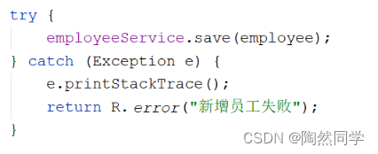 如果采用这种方式,虽然可以解决,但是存在弊端,需要我们在保存其他业务数据时,也需要在Controller方法中加上try...catch进行处理,代码冗余,不通用。
