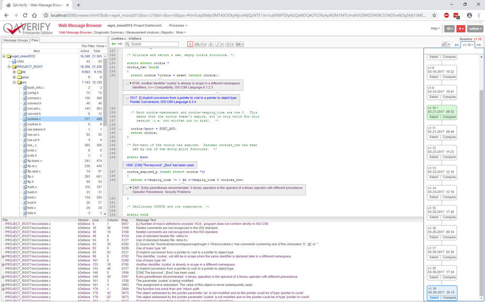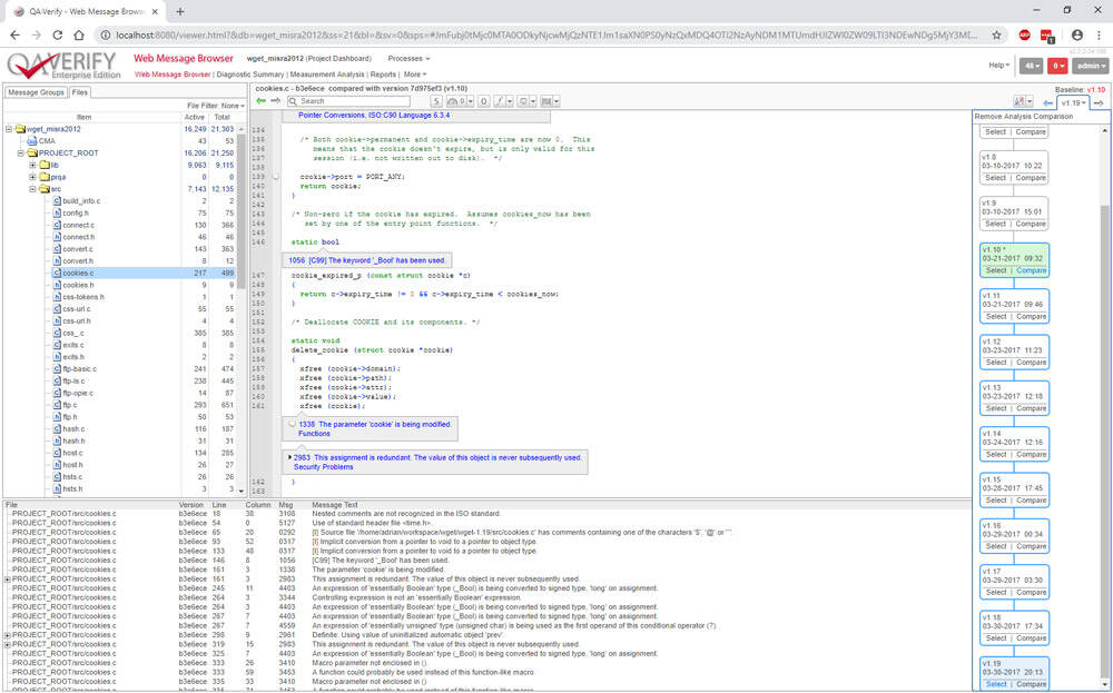 在某些情况下,您可能会从一个项目到另一个项目复用源代码。但是,有些源代码没有根据编码规范开发。如果您需要实现合规(如MISRA合规),这可能会产生问题。通过使用Perforce静态代码分析工具,如Helix QAC for C/C++或Klocwork for C, C++, C#, Java, JavaScript, Python,很容易看到代码中的错误所在。