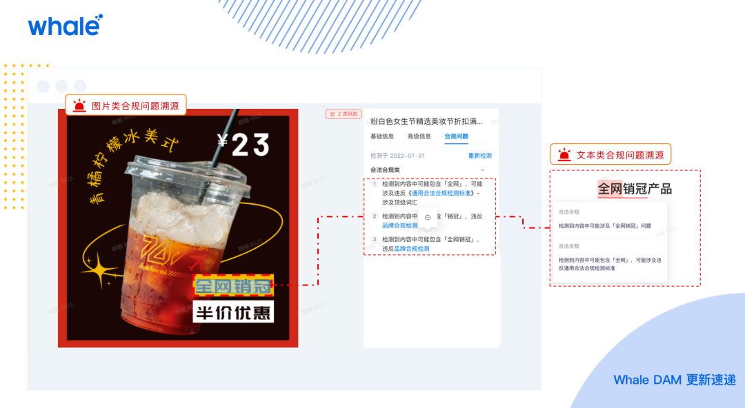 如何实现 AI 智能内容合规管理转型,为品牌内容合规审核降本增效?帷幄「 DAM 」在流火七月中以内容合规检测链路升级为主,协同内容评论、飞书协作接入等相关功能的新枝萌发,为品牌带来不一样的内容资产使用体验。