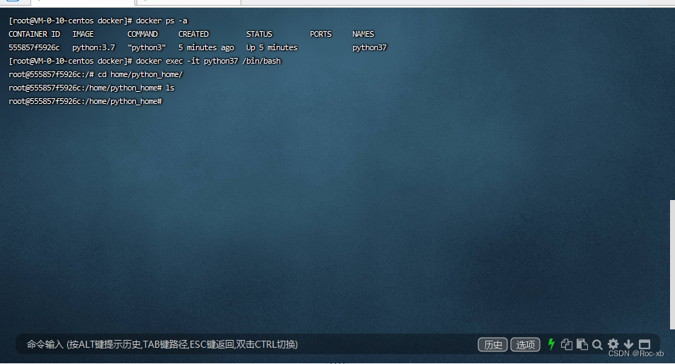 进入到容器,我们发现容器中已经存在python_home文件目录了,说明我们目录挂载已经生效了。