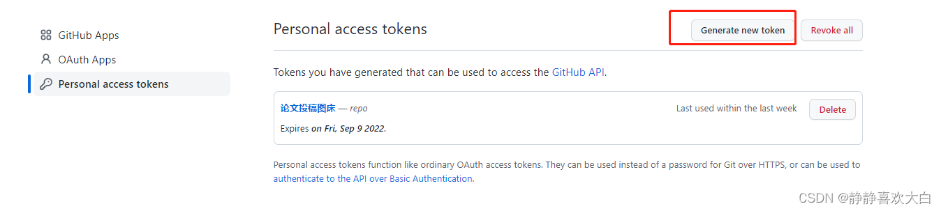 4、生成的Token一定要复制(可以保存到一个txt文件中或者说可以保留该界面),否则不会再显示,下面只是别人的示例