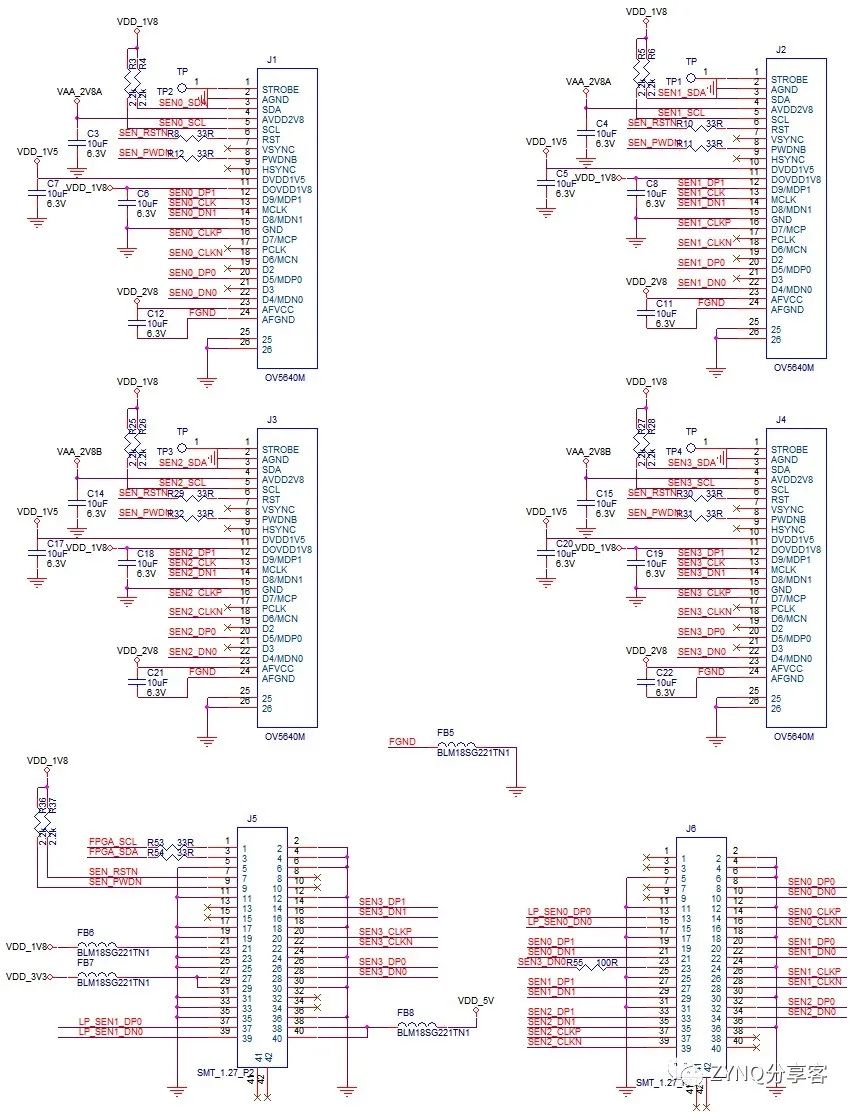 (3) 连接到30Pin FPC接插件的J1~J3的sensor采用softMIPI采集,J4上的Sensor采用硬核MIPI接收;