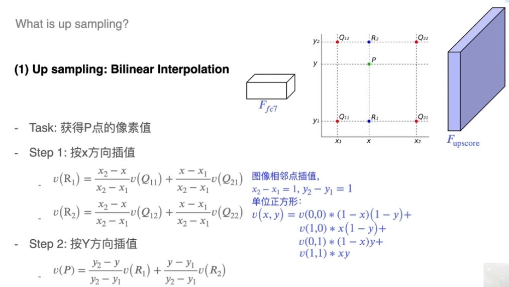 - 插值,一般使用的是双线性插值,因为效果最好,虽然计算上比其他插值方式复杂,但是相对于卷积计算可以说不值一提,其他插值方式还有最近邻插值、三线性插值等;