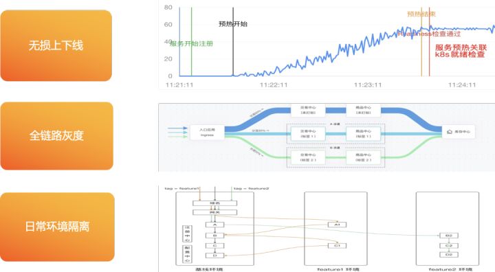 支持小流量服务预热,避免新启动应用被流量击垮;而预热模型支持动态调节,可满足复杂场景需求;并且,预热过程支持关联 Kubernetes 检查。