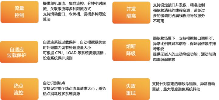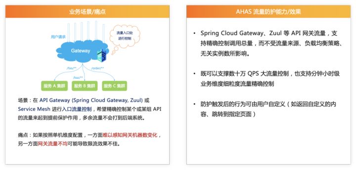 场景丰富:全面覆盖从网关入口流量精确防护、Web/RPC 服务调用精确流控到分钟小时级业务维度流量控制的场景