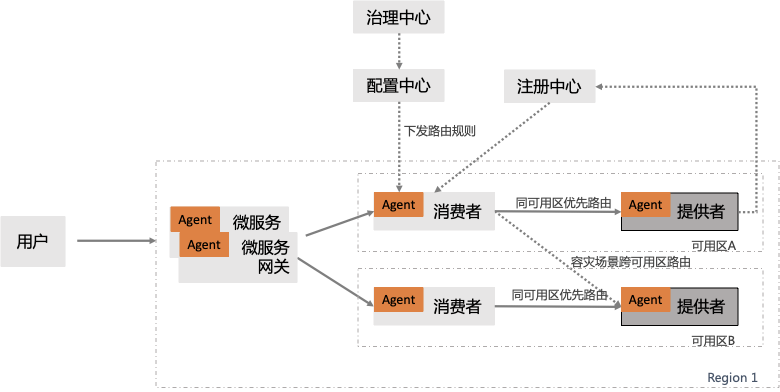根据路由规则,自动识别同可用区,并优先选择同可用区减少调用时延,提升性能,并可实现容灾场景下的流量切换,保障可用性。