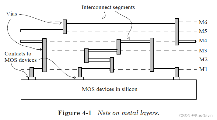 本章对处理和表示设计时序验证中的互联寄生的多种方法作概括。在数字设计中,将标准单元或块(block)的引脚连接在一起的线(wire)称为网络(net)。网络通常只有一个驱动,但它可以驱动多个扇出单元或块。物理实现(physical implementation)后,网络可以在芯片的多个金属层上移动,各种金属层可以具有不同的电阻和电容值(在该层上的寄生参数是等效的)。对于等效的电气表示,通常将网络划分为多个段(segment),每个段均由等效的寄生参数表示。我们也将段称为互连走线(interconnect trace),也就是说,它是特定金属层上网络的一部分。
