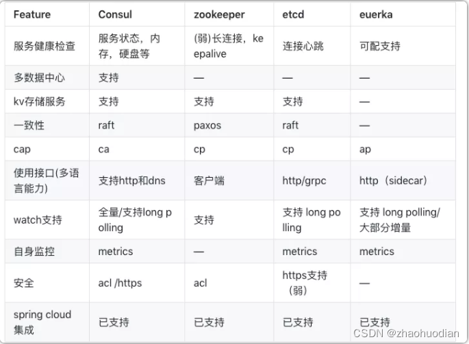 除了注册中心的功能之外,Consul还能起到配置中心的作用。Consul它保证的是CP,使用Raft协议,要求必须有过半的结点都写入成功才算是注册成功了,并且它也有Master和Follower的概念,在Master挂掉后,也需要自己内部进行。