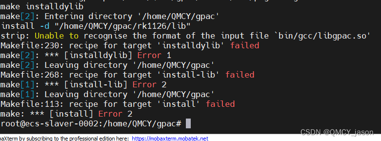 网上搜了下说是 编译的gcc和strip不是一个架构的 搜索下config.mak 注释掉行 重新make install