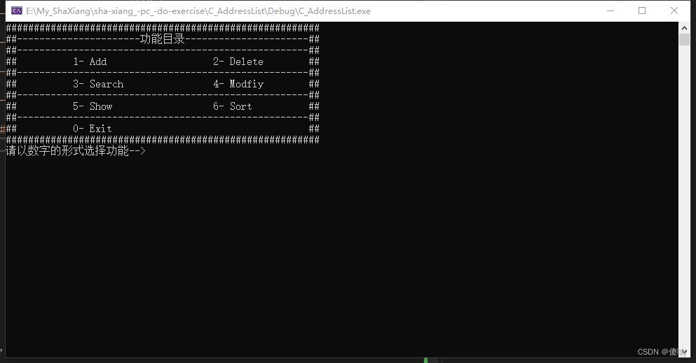 - printf("请以数字的形式选择功能-->\n");