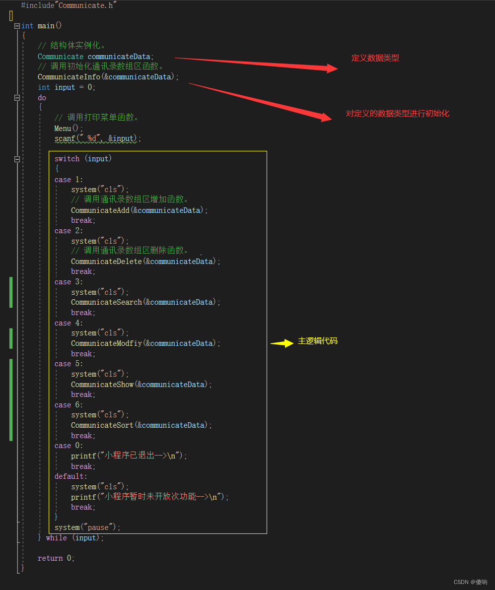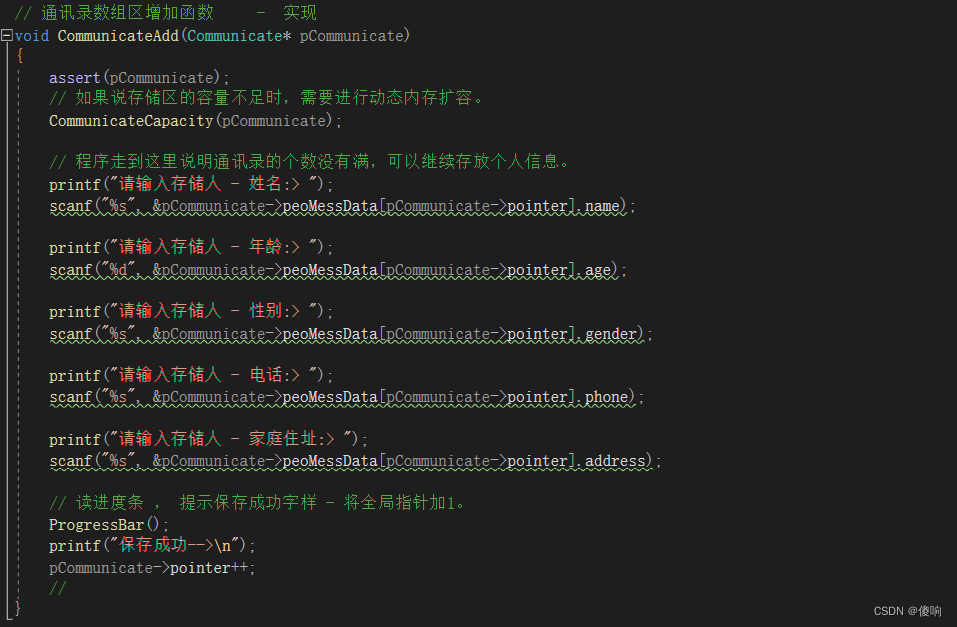 - CommunicateAdd(&pCommData); // 调用通讯录增加函数