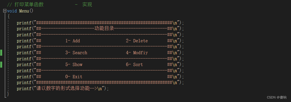- // 打印菜单函数 - 函数实现。