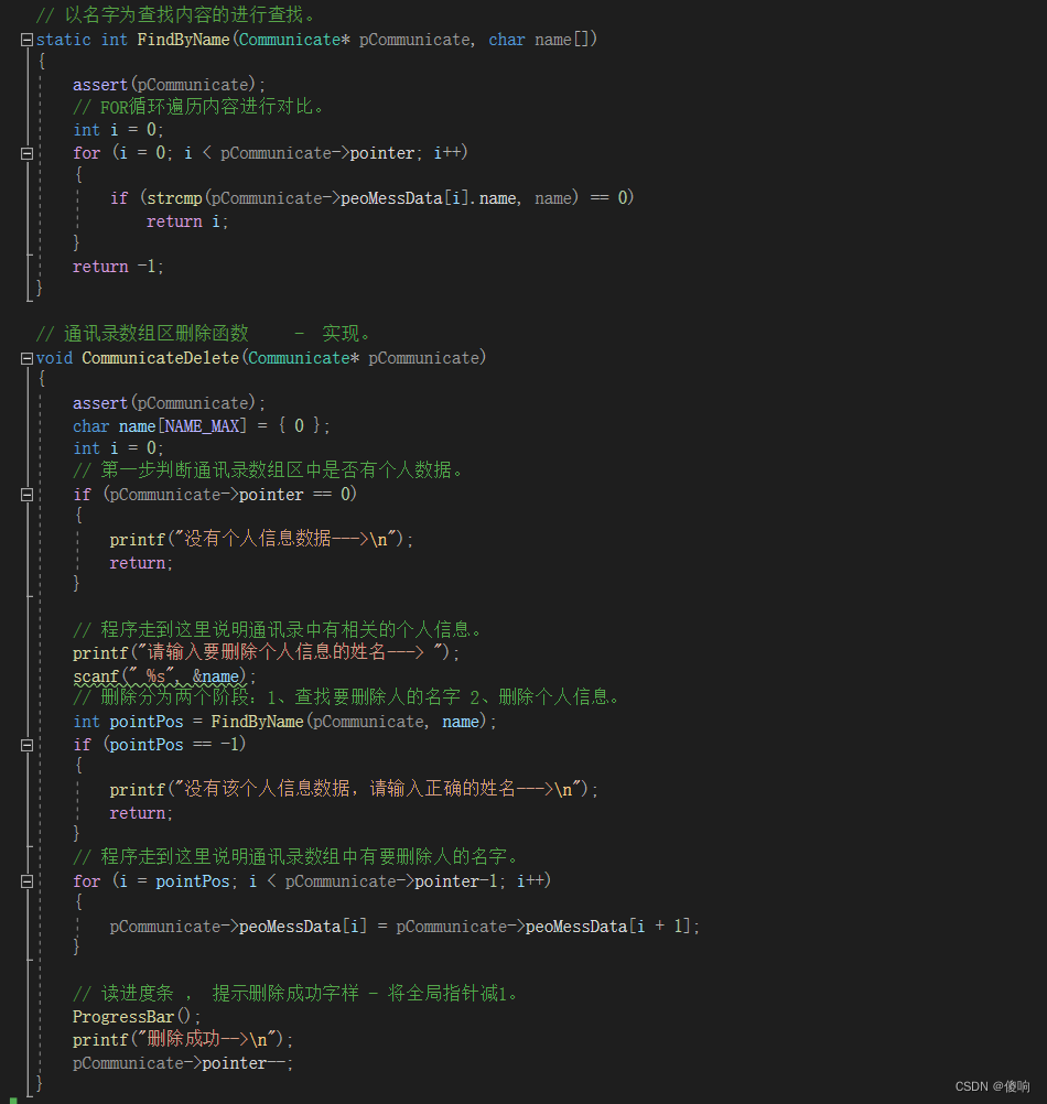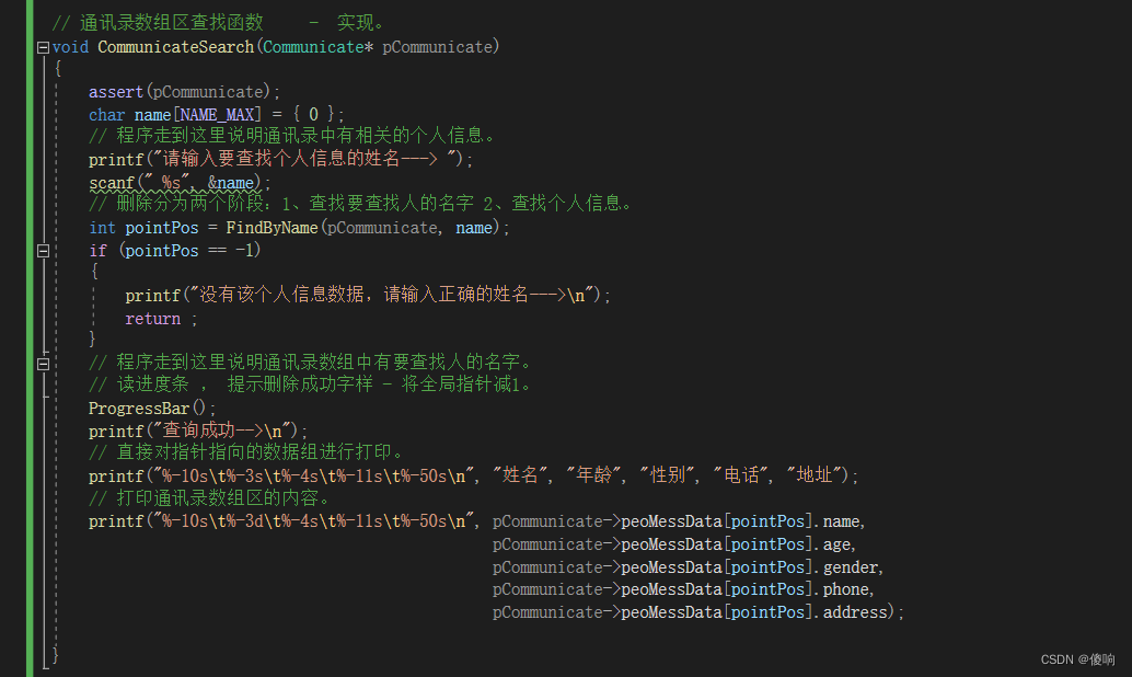 修改函数的代码也是和前面一样的逻辑,当找到了要修改人的指针下表,我们可以让用户在重新输入要修改的内容。