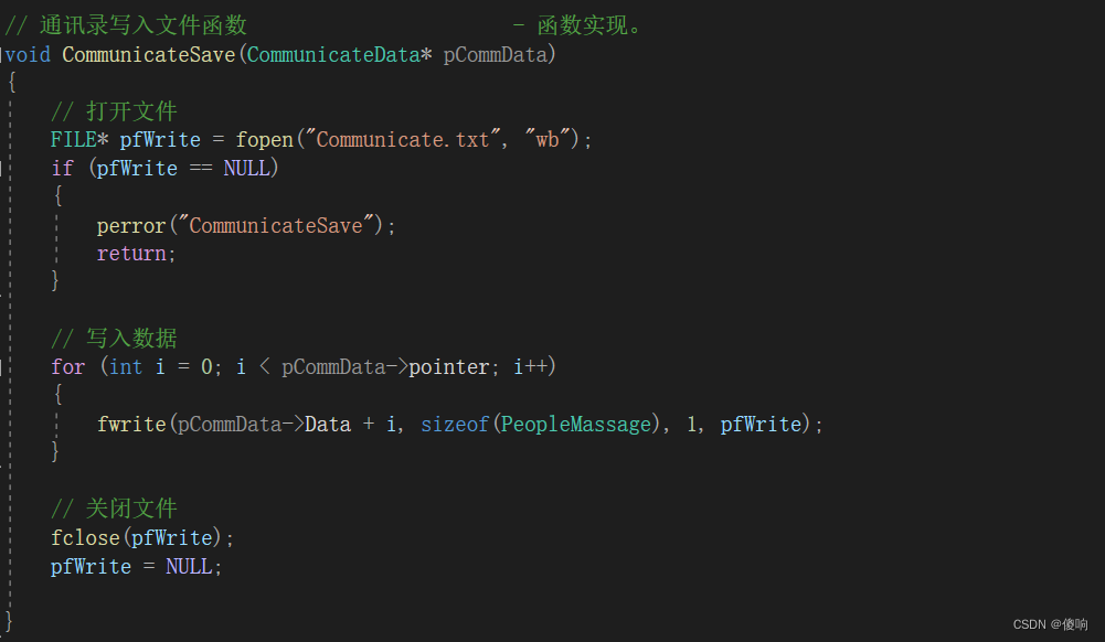 - // 通讯录写入文件函数 - 函数实现。