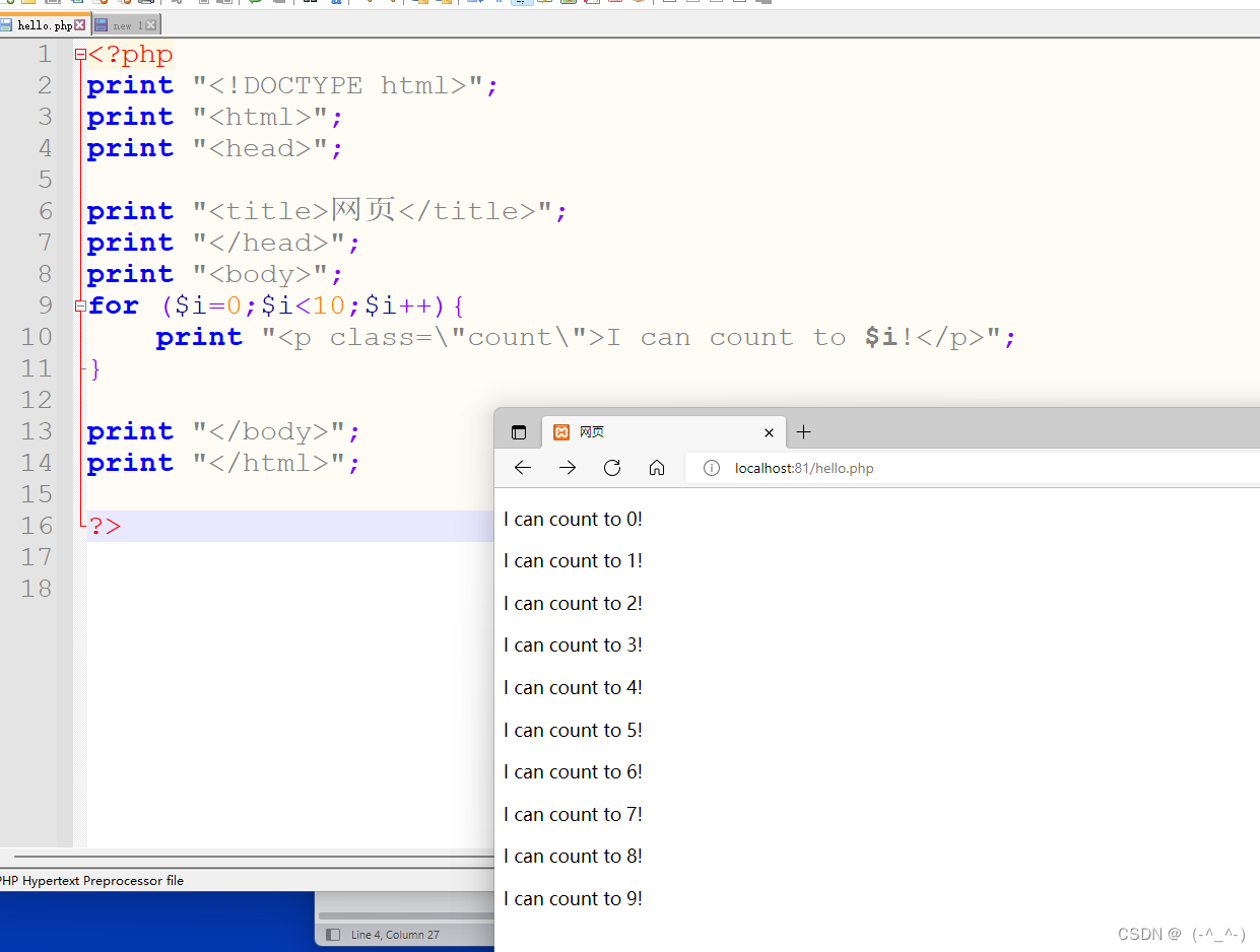 class="count">想要变量出现需要在php中再嵌入PHPphp print $i ?>!p>
