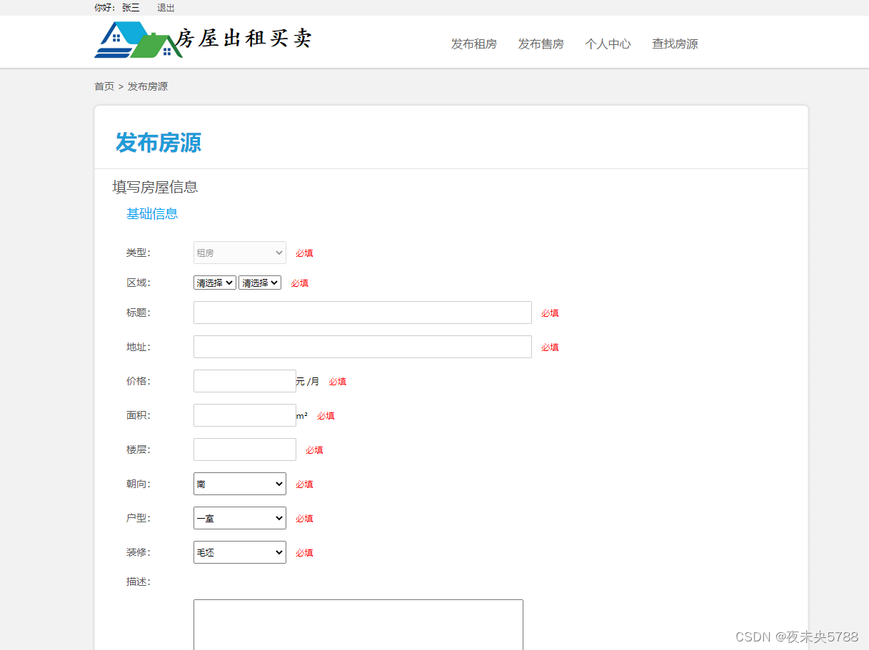 用户角色,修改个人信息,发布租房信息,发布售房信息,查找房源,查看消息通知,查看被举报记录,租房管理,售房管理等功能。
