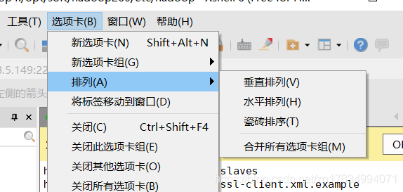 首先打开xshell,新建3个会话分别命名为 hadoop2,hadoop2,hadoop4;打开这三个窗口,选择最上端的选项卡,排列中选择水平排列