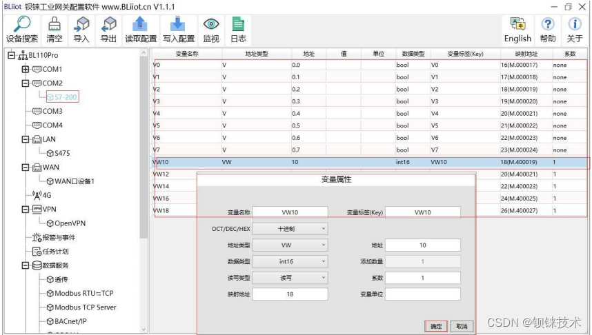 BL110 网关设备的地址,可以随意填写。映射地址不能重复。范围:0-2000