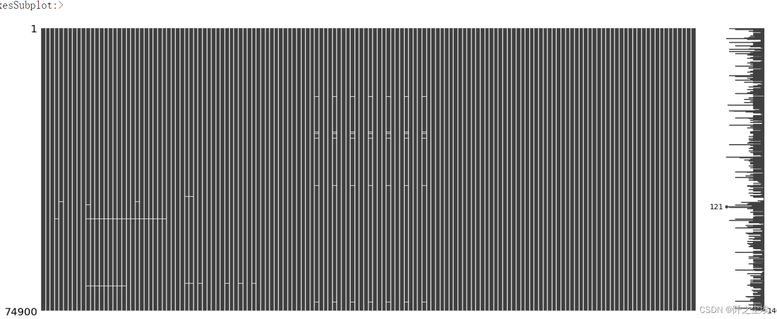 然后将缺失值过多的列删除,这里阈值是74000,就是说一个列特征的缺失值达到900条的特征就删除