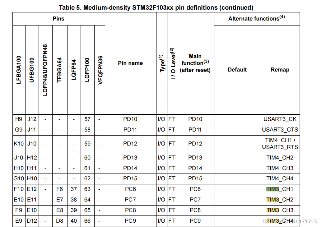 从芯片资料可以看出,r8t6的TIM3也用到了PC7、PC8。只不过是被Remap上去的,就是我们所说的映射。