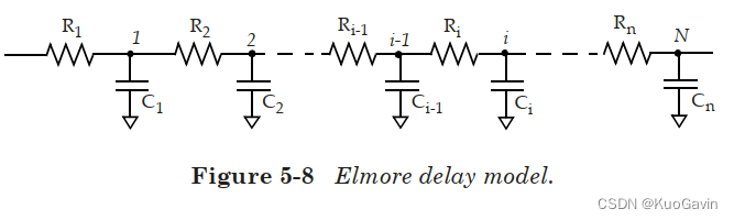 Elmore延迟模型(如图5-8所示)适用于 R C RC RC树。什么是 R C RC RC树? R C RC RC树应满足以下三个条件: