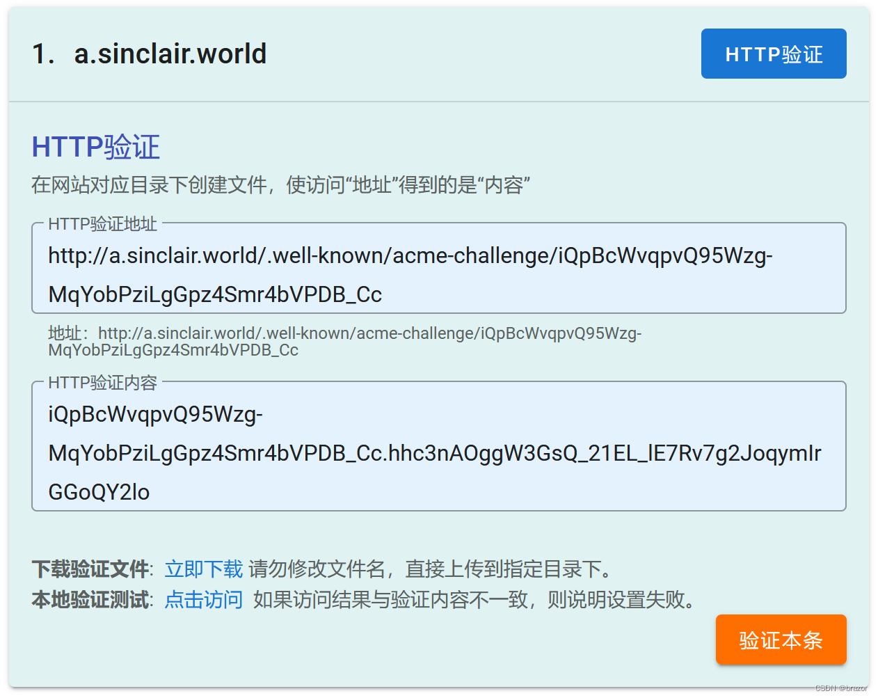 点击"立即下载",把文件放到新建的文件夹里面, 就可以直接点击验证本条了, 需要注意的是服务器的配置不要把http直接跳转https了, 不然要报错