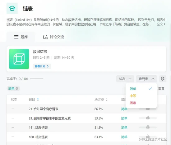 为了养成创作习惯,从今天起开始刷力扣了,只刷简单和中等难度的题,分类刷,这个月就先刷链表题,从简单的开始按着顺序刷,一天一道,养生做法。