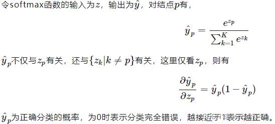 越接近于1,偏导越接近于0,即分类越正确越不需要更新权重,这与期望相符。