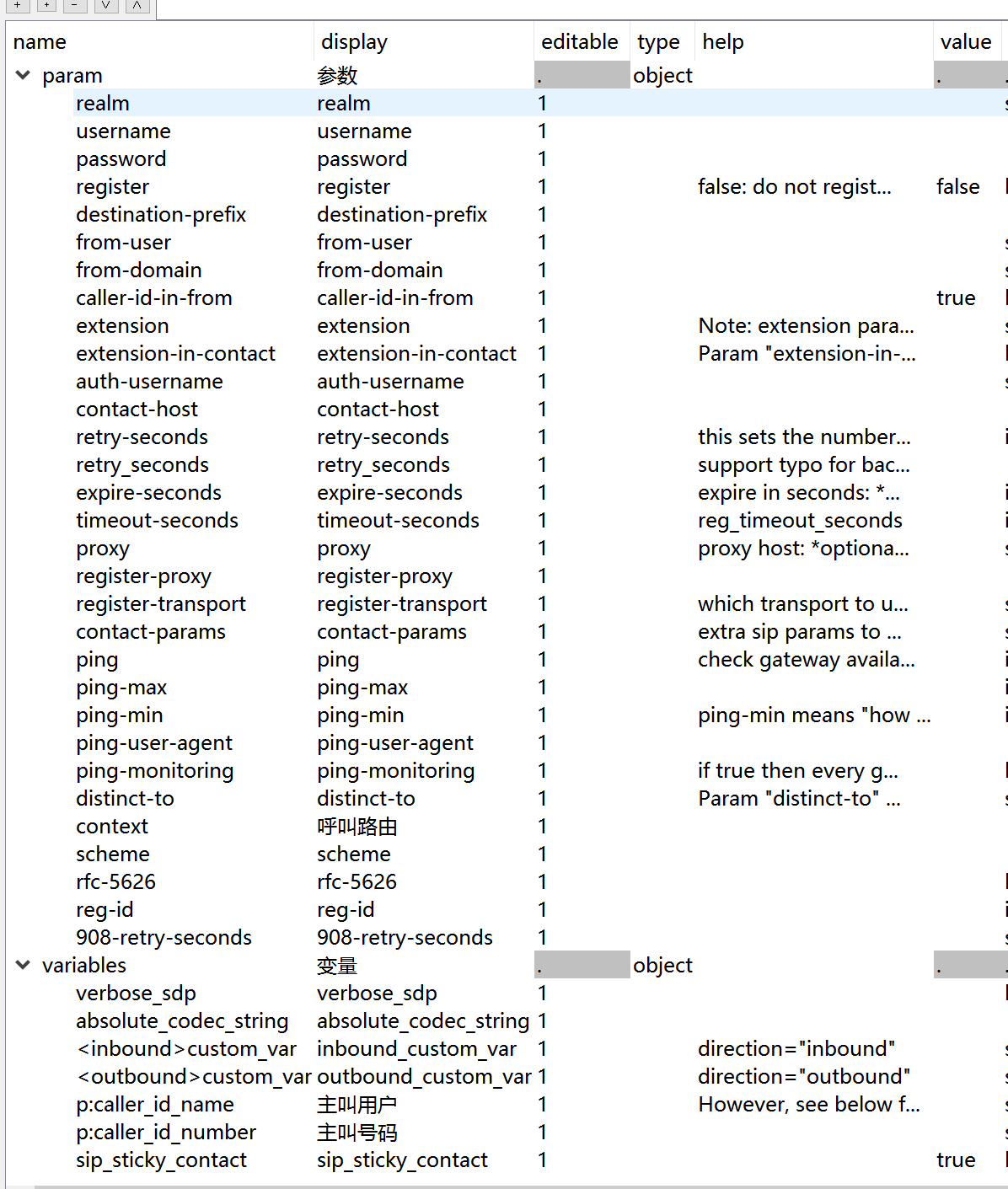 支持给网关指定变量,设置网关的语音编码编码和主叫号码。网关配置编辑后,不能实时生效 ,需要执行sofia命令才可以生效,具体看SIP设置。有关系统方面问题请找博主,看他名字和他一起技术交流学习