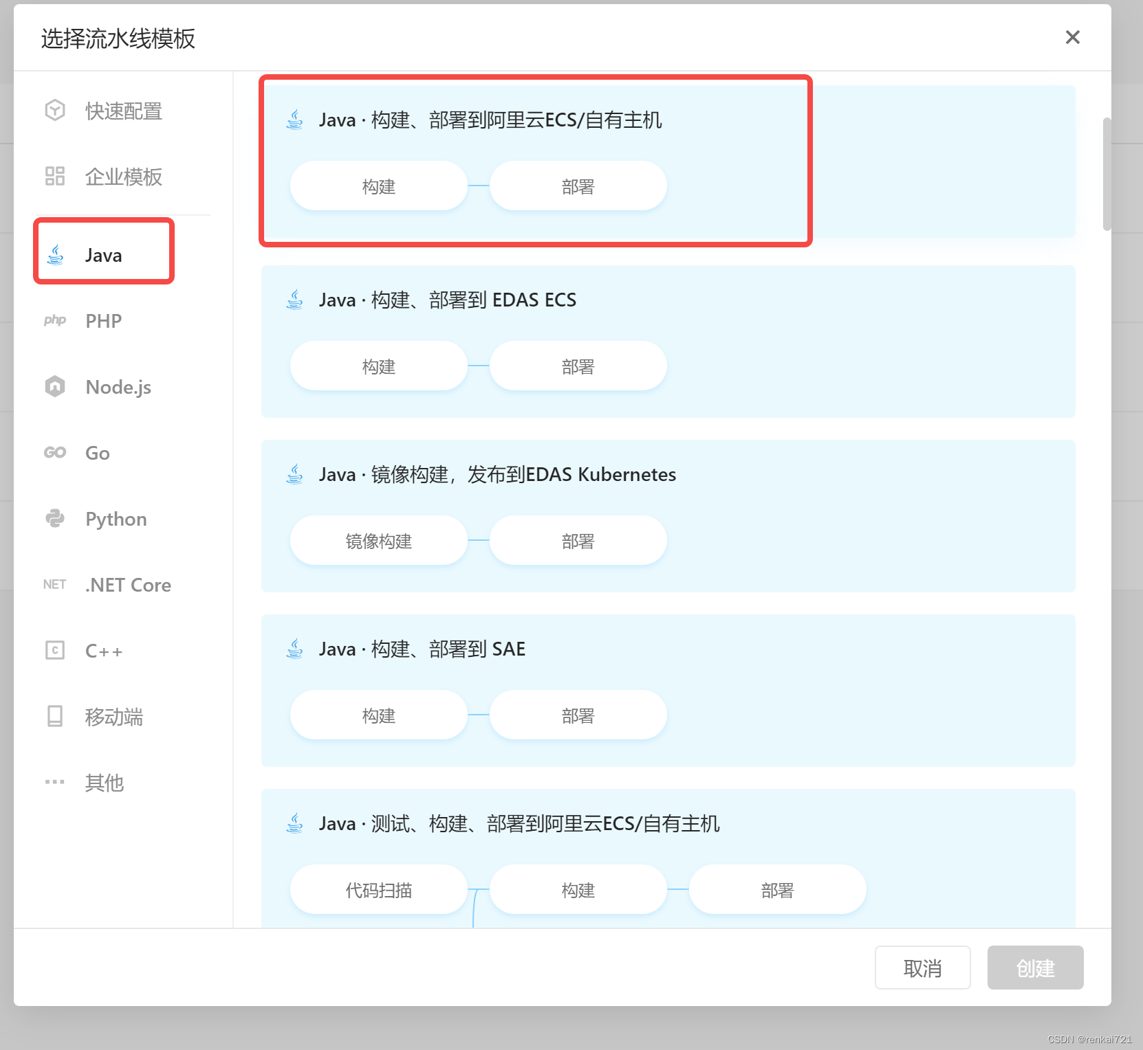 2、新建流水线,选择自己的ECS