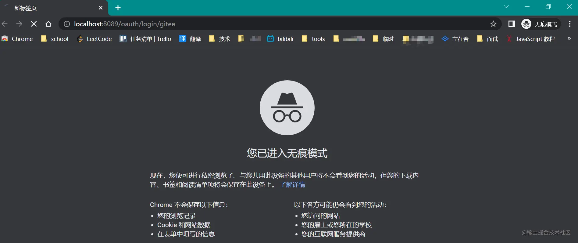 我们首先访问localhost:8089/login/{type}接口,这里的type是实现哪个第三方登录,这里就是填什么类型,像我们实现了 gitee,此处便填写gitee。