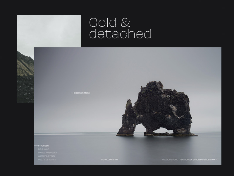 5. FullscreenScroll - 一个很好看的可以滚动的全屏幻灯片项目,带有由 GreenSock 的 Observer 插件提供支持的内容视图,动效很好看,开源的。可以在codrops这里看详细介绍。