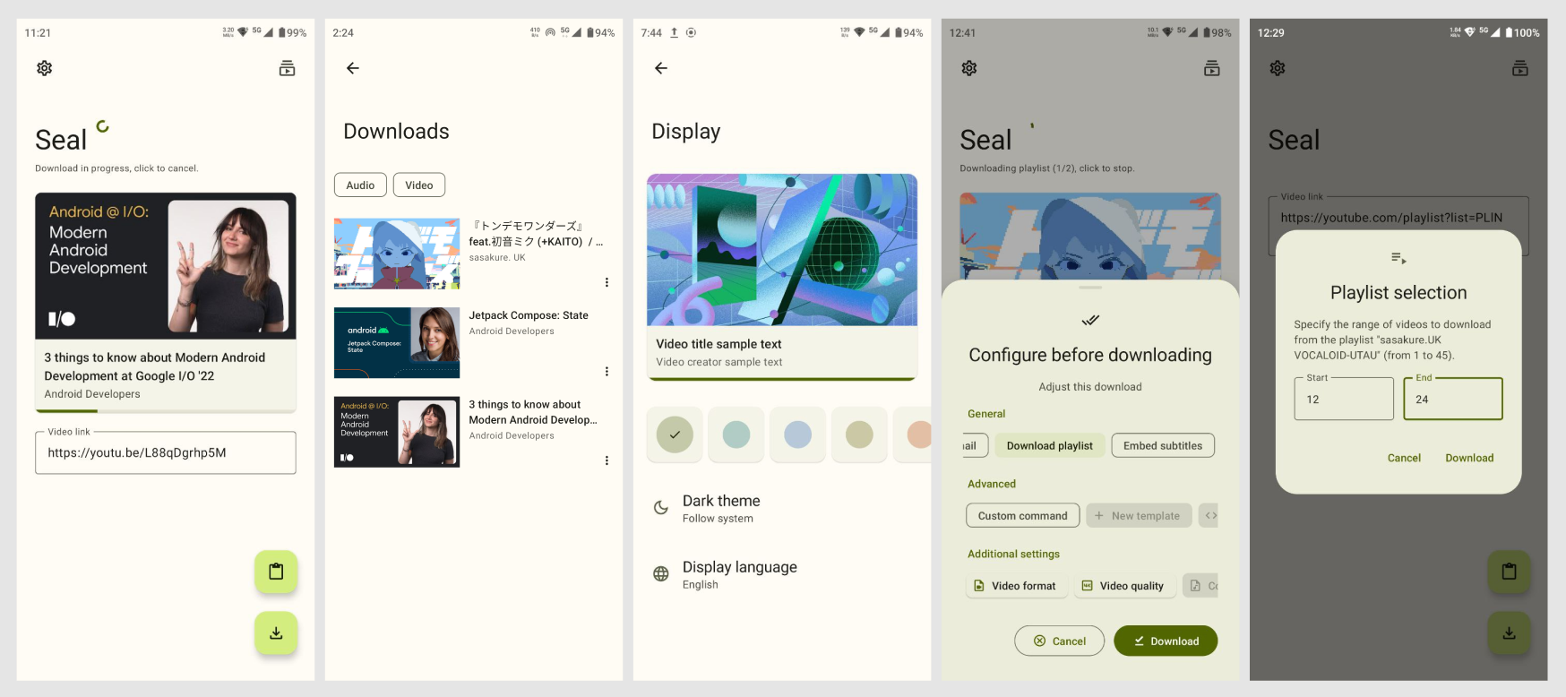 1. Seal - 这是一个开源的 Material You 风格的视频下载软件,可以从开源项目 yt-dlp 所支持的数千个视频平台下载视频与音频,使用 Jetpack Compose 进行开发。真的非常好看。
