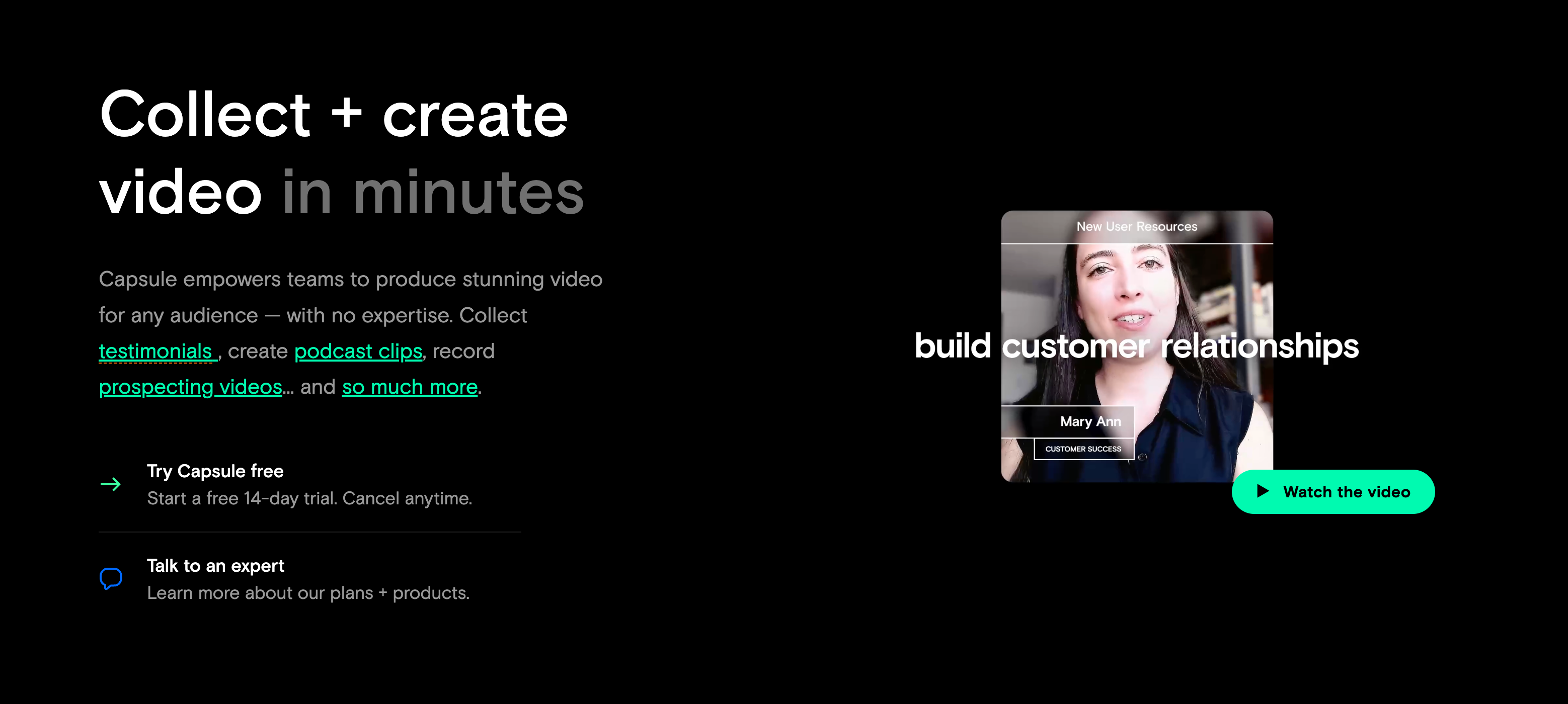 7. Capsule - 这是一个在线制作视频的产品,内置了很多模板样式,使用场景也比较多,通常是是用来制作简短的介绍视频,面向企业客户多一点。$240/ month。