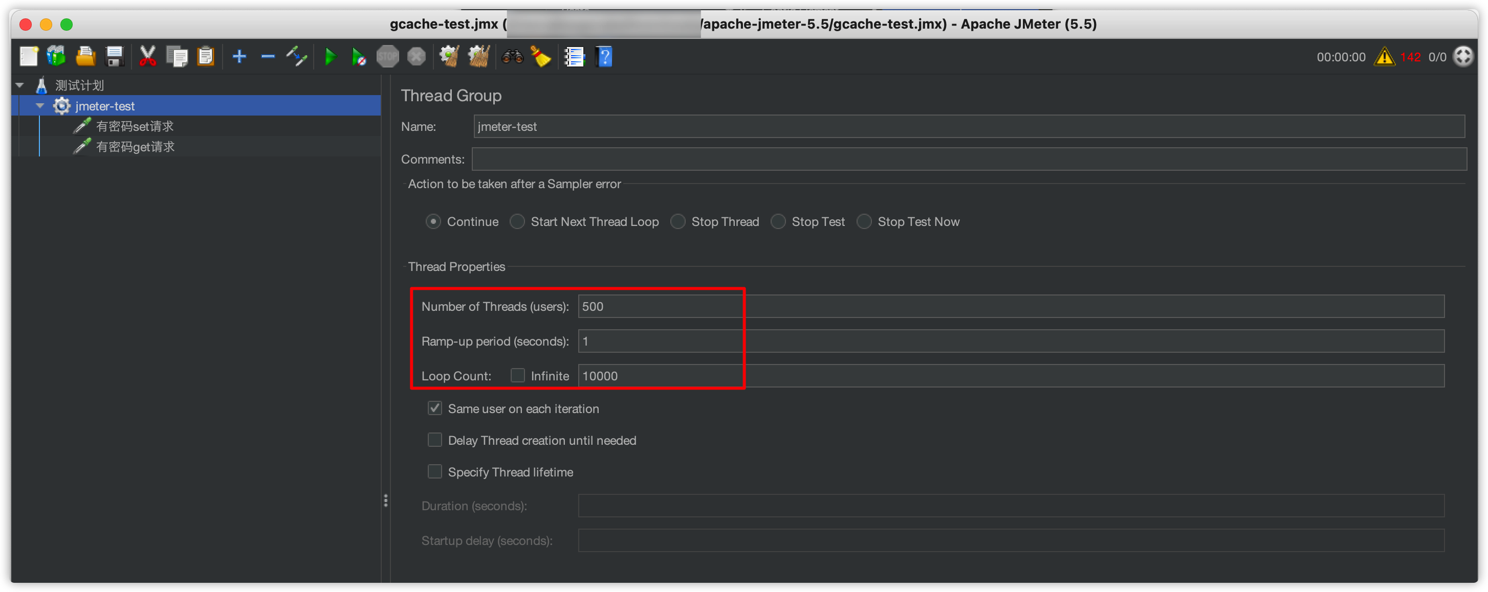 jmeter运行参数如下: