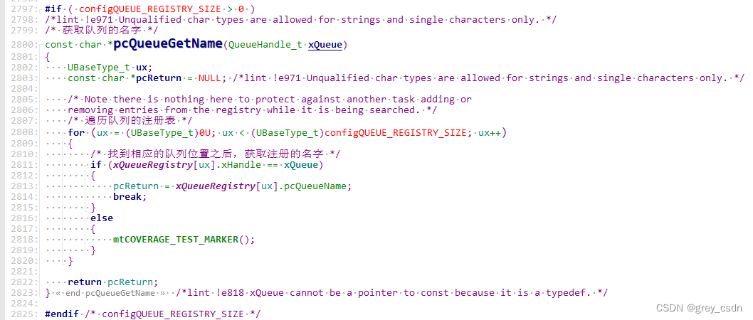 在队列的注册表中增加队列的注册。首先遍历队列的注册表,寻找到空闲点位之后进行队列对象指针以及队列名称的绑定处理。由此,反注册的操作其实也很容易推敲出来。