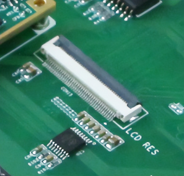 CON15是LCD电阻触摸屏接口,为40pin FFC连接器,间距为0.5mm。LCD接口座中包含了常见LCD所用的全部控制信号(行场扫描、时钟和使能等)。其中,1、2、3、4引脚为触摸屏信号,接口定义如下图所示: