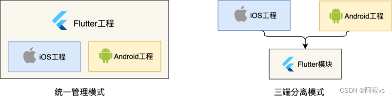 两种开发模式就不详细介绍了,三端分离模式为现在主流模式。使用三端分离模式Android端需要创建Flutter模块以module形式进行依赖,既可以在原有原生工程基础上进行拓展,也有利于项目管理。