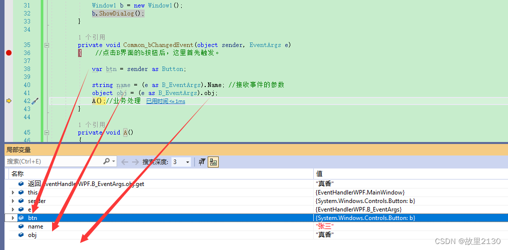 - string name = (e as B_EventArgs).Name; //接收事件的参数