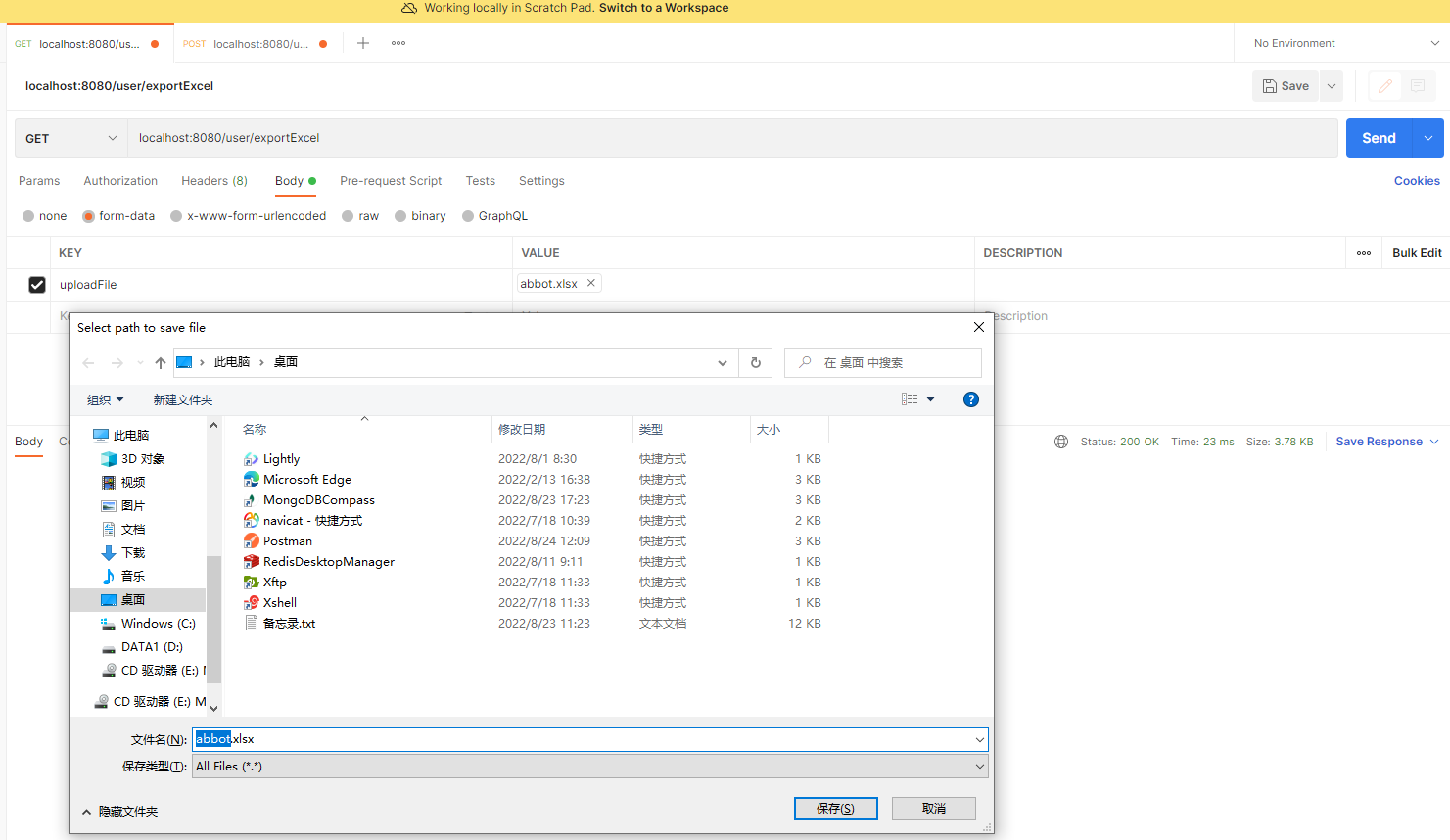 * 浏览器下载excel