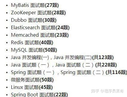 我也花费好几个月收集整理了各大厂常见面试题N道,你想要的这里都有内容涵盖:Java、MyBatis、ZooKeeper、Dubbo、Elasticsearch、Memcached、Redis、MySQL、Spring、Spring Boot、Spring Cloud、RabbitMQ、Kafka、Linux等技术栈!!!
