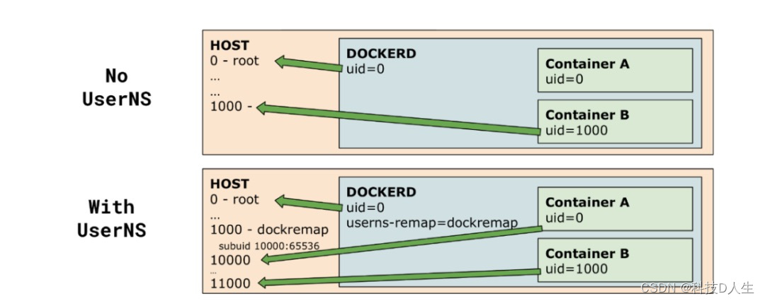 该功能之所以重要,是因为用户命名空间能够更好的实现安全隔离;在之前的版本中,容器如果使用 root 用户启动进程,那么容器的命名空间和主机的命名空间在隔离上就存在一些漏洞,过去也有很多 CVE 是基于此而产生的。在之前的版本中,我们会推荐客户在容器中使用非 Root 用户启动进程,并且在容器中使用非 root 用户进行操作。例如, kubeadm 推出的 RootlessControlPlane 特性功能门,开启该功能门之后,系统组件包括 apiserver、kube 控制器、调度器都会使用非 root 进行启动。而未来当用户命名空间的支持成熟之后,系统就不需要要求客户使用非 root 用户启动进程来获得更安全的效果,因为用户命名空间本身就起到了更好的隔离作用。