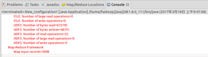 public static class TokenizerMapper extends Mapper 运行 MapReduce 程序前,务必将 /home/hadoop/hadoop/etc/hadoop 中将有修改过的配置文件(如伪分布式需要core-site.xml 和 hdfs-site.xml),以及log4j.properties复制到WordCount 项目下的 src文件夹(~/workspace/WordCount/src)中。