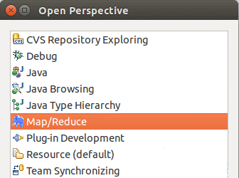 选择Window 菜单下选择 Open Perspective -> Other,弹出一个窗体,从中选择Map/Reduce 选项即可进行切换。